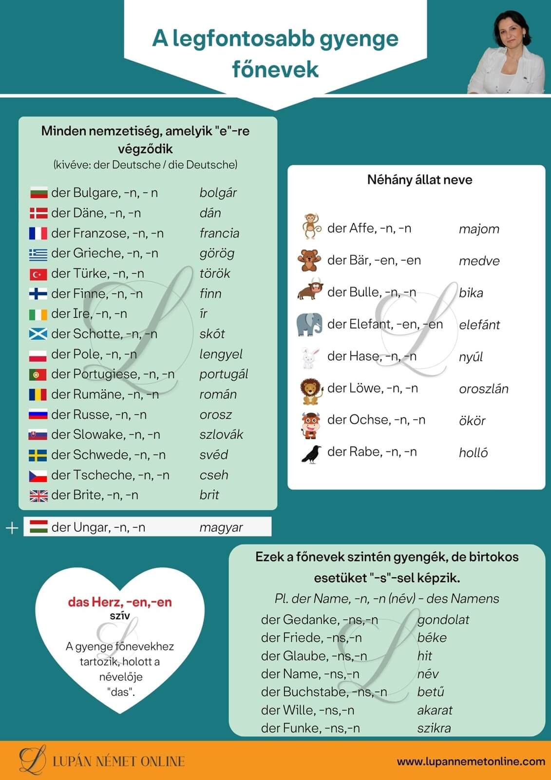 Nyelvtani magyarázatot a gyenge főnevekhez a linken találsz.