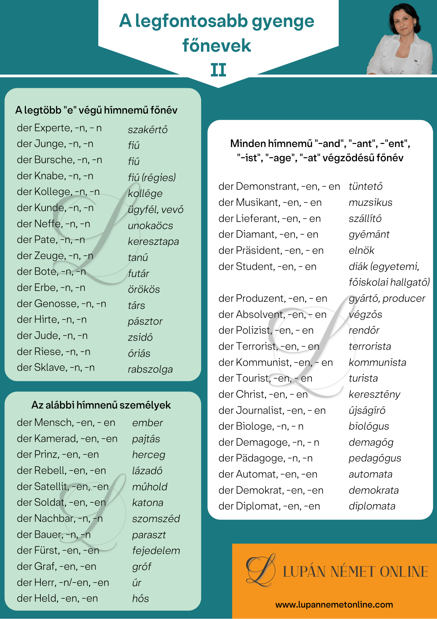 Ezen a linken pedig találsz Mittwoch mit Ági videót a gyenge főnevekhez.