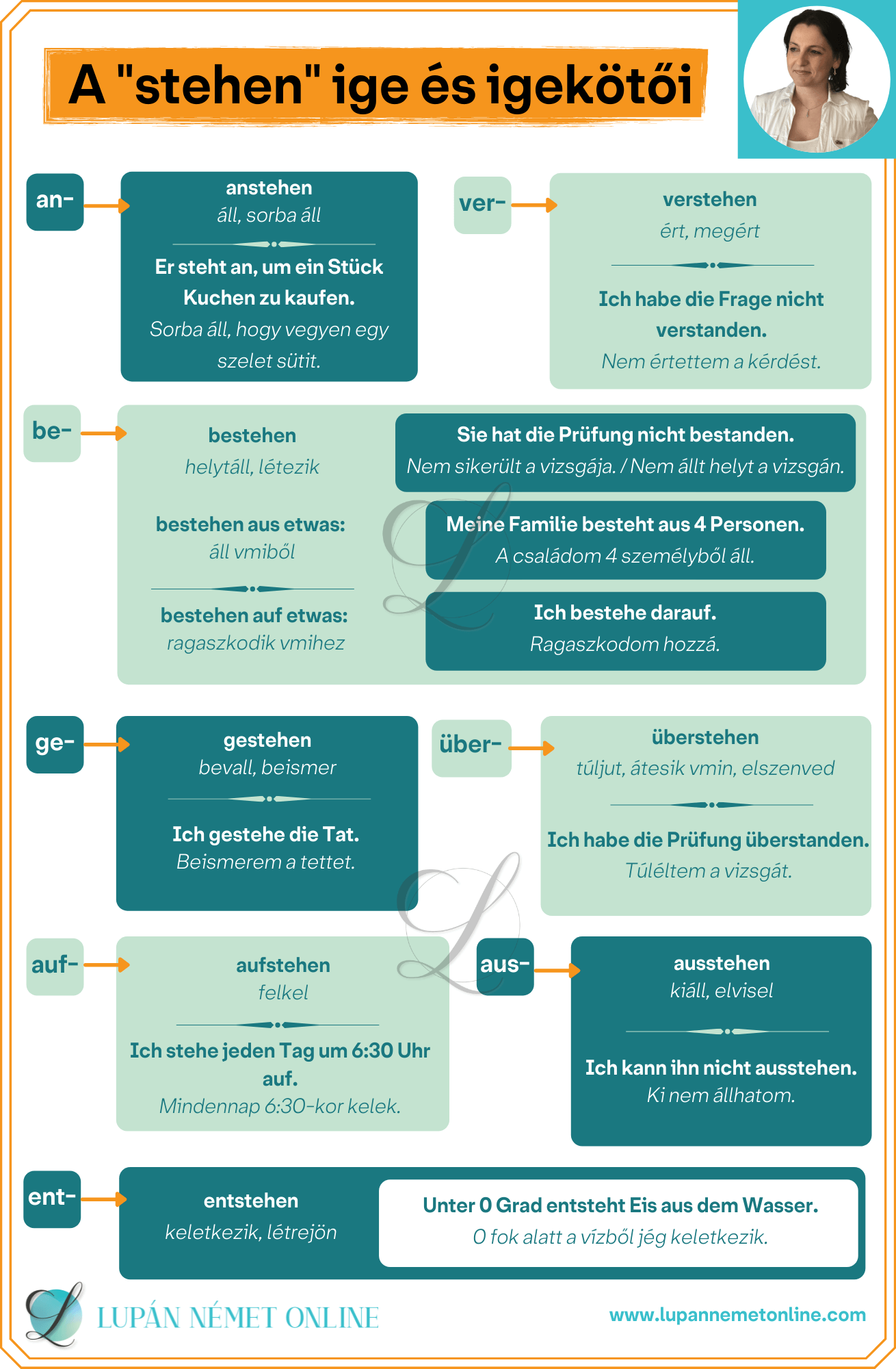 A ‘stehen’ ige különböző igekötőkkel