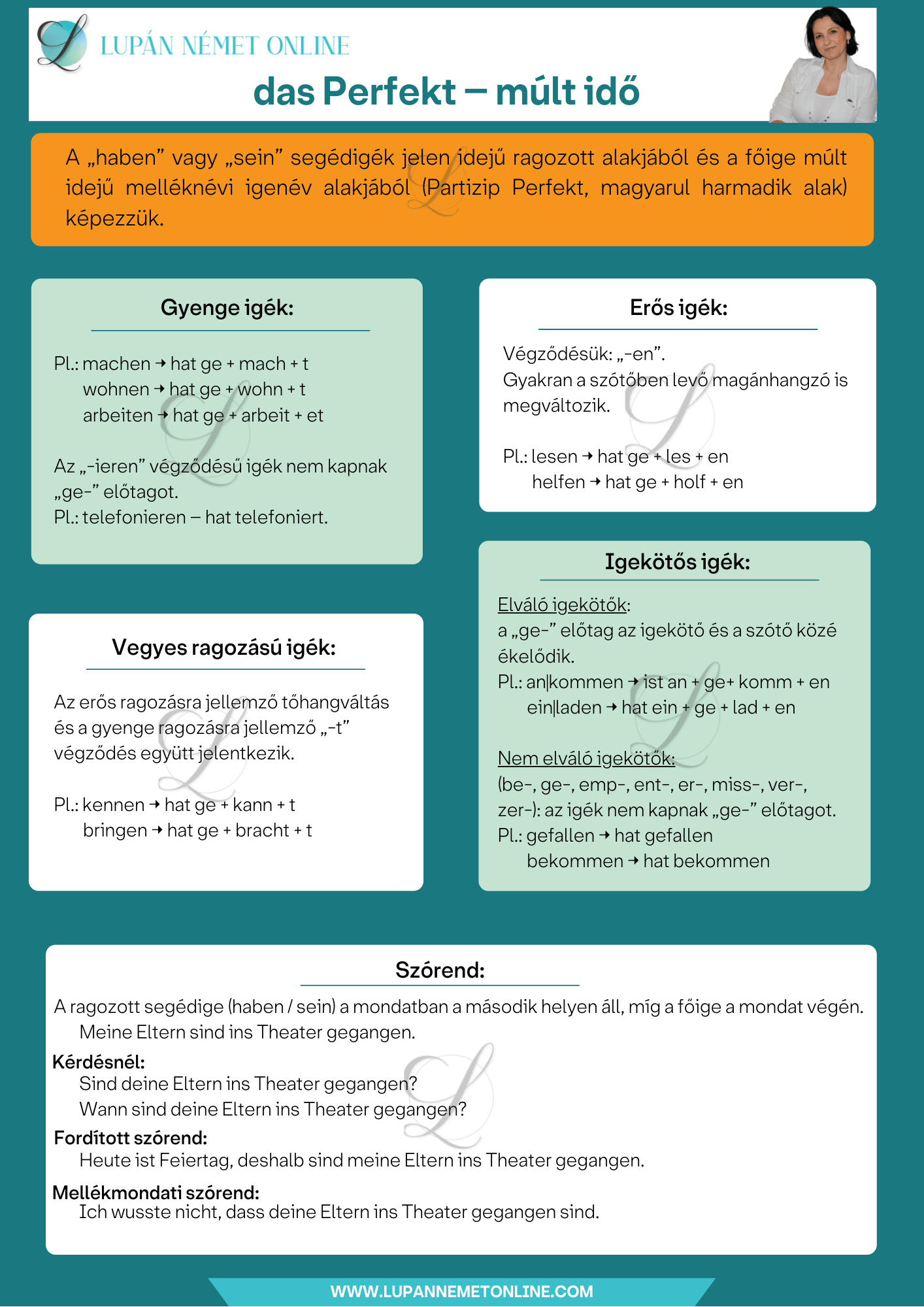 Ebben a bejegyzésben nyelvtani magyarázatot találsz a Perfekt (összetett múlt idő) képzéséhez.