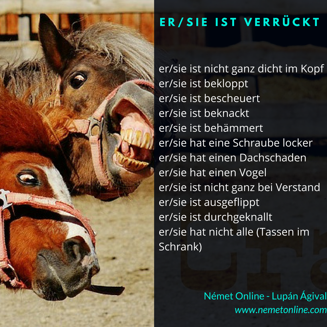 Ebben a bejegyzésben kifejezéseket tanulhatsz, hogyan mondjuk, ha valaki bolond, megőrült (er/sie ist verrückt).