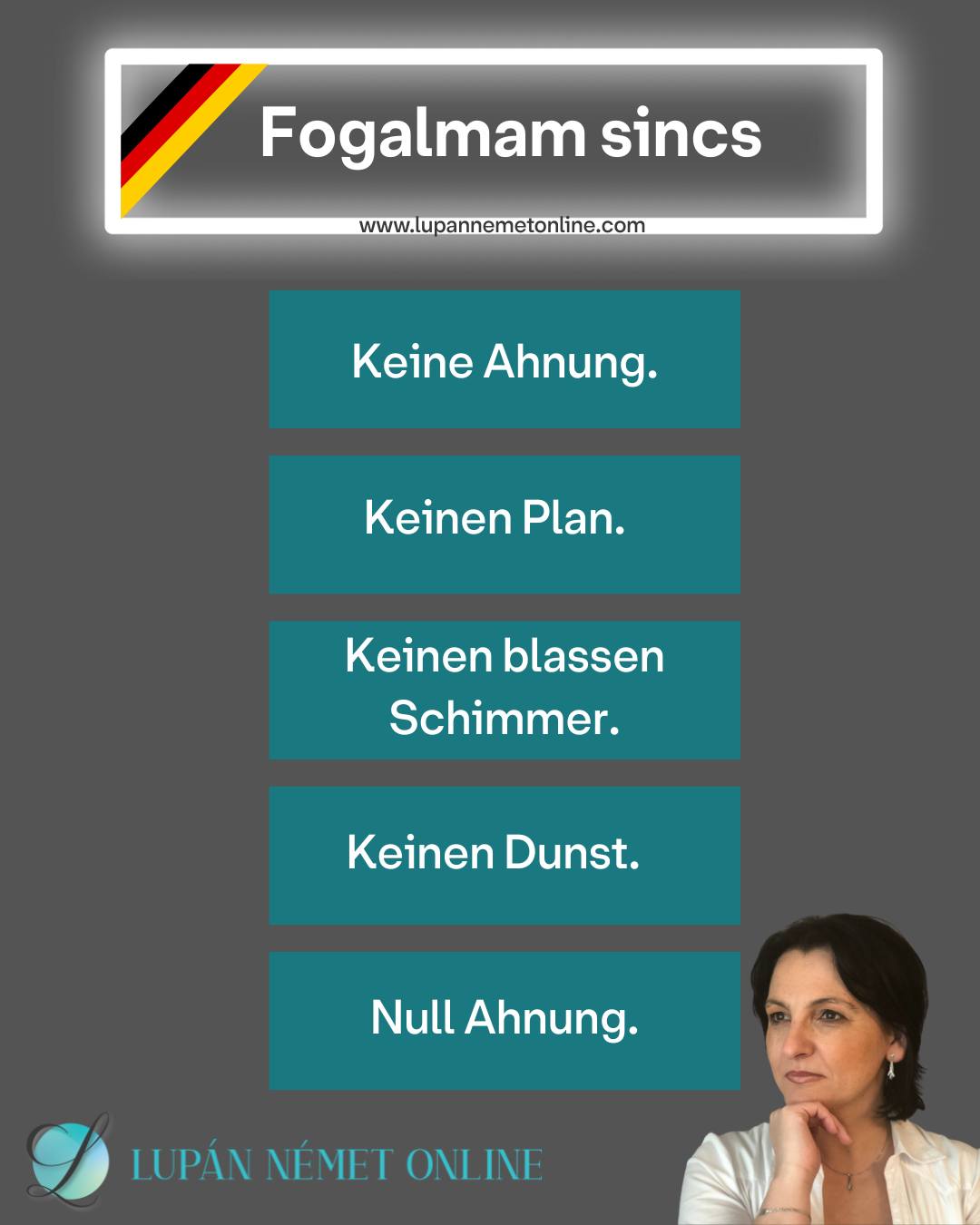 A németek sem tudják mindig, mi van. De legalább sokféleképp tudják kifejezni, hogy fogalmuk sincs. Nézd csak, itt van pár lehetőség. Tudd, hogy ezek elég szlenges változatok.