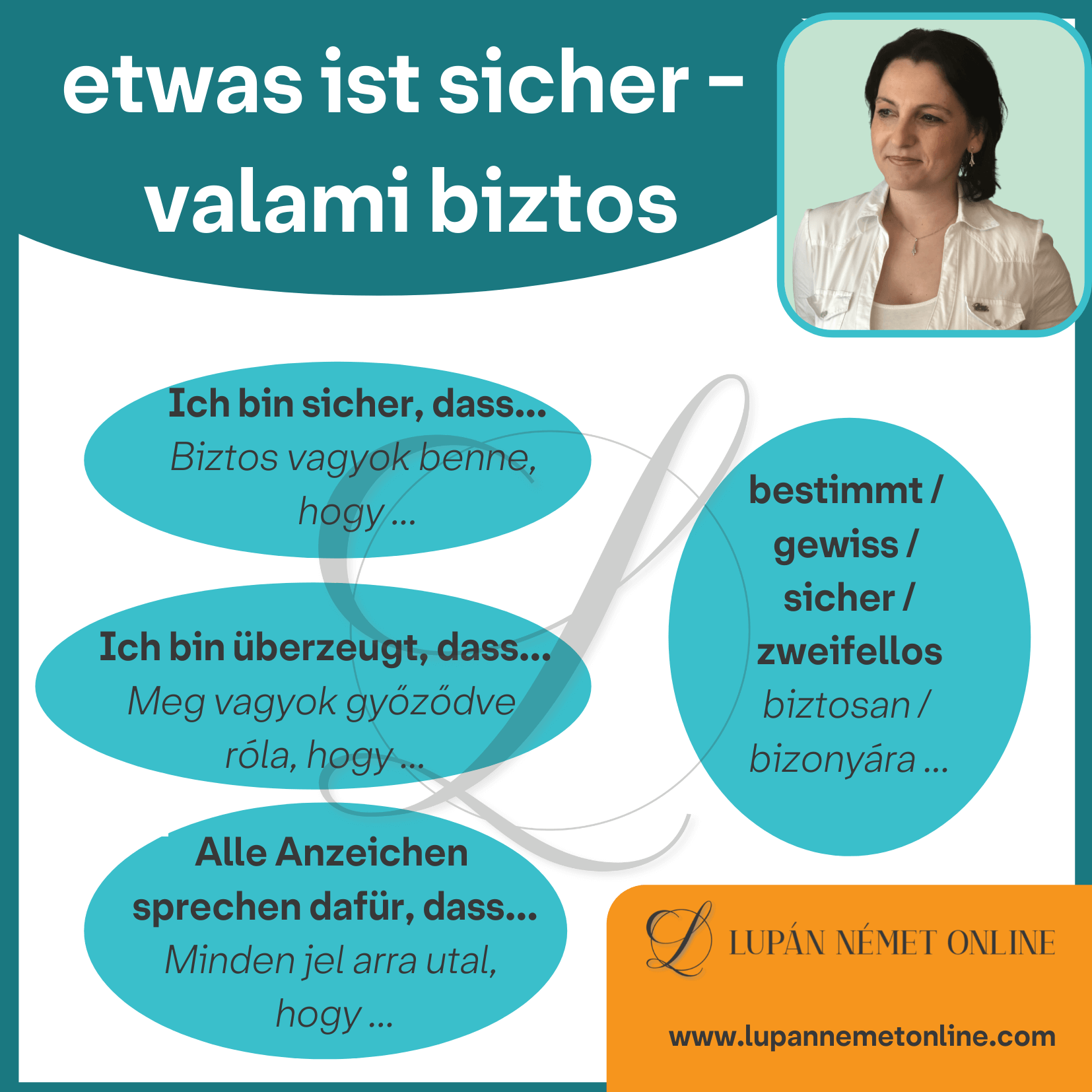 Az alábbiakban pedig többféleképp is megtanulhatod kifejeteni, ha valami biztos – etwas ist sicher