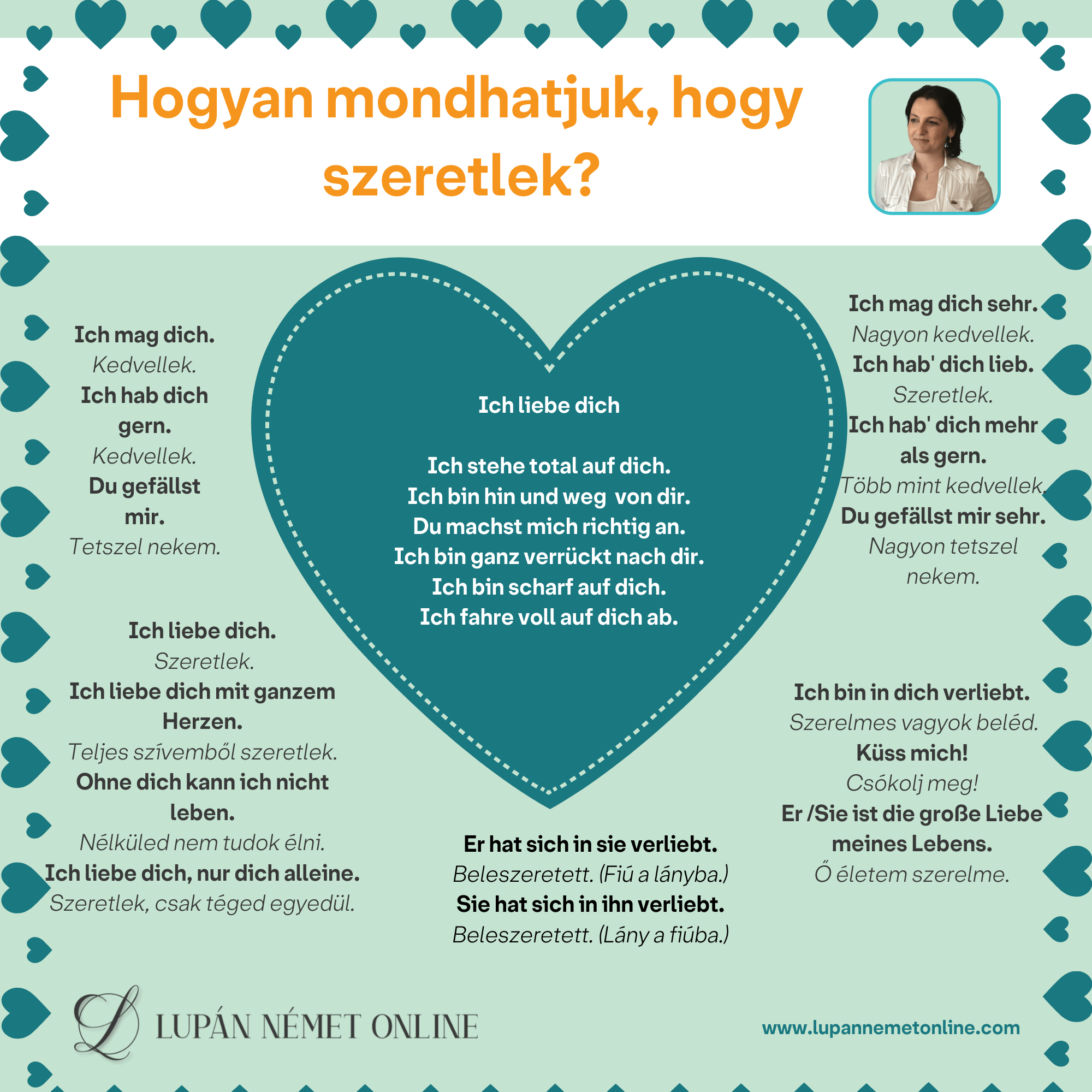 Ebben a bejegyzésben a szókincsedet tudod bővíteni. Hogyan mondhatjuk másképp, ‘szeretlek’ (=ich liebe dich)?
