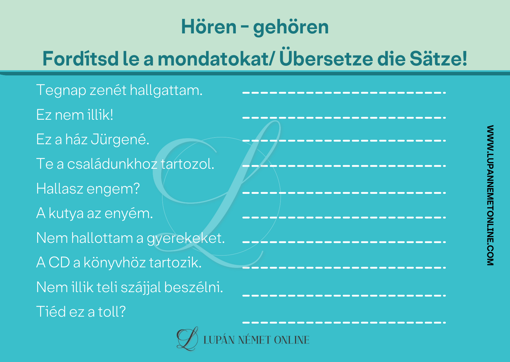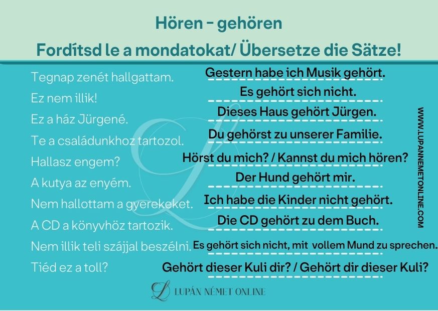 A “hören” – “gehören” szerkezethez nyelvtani magyarázatként egy videót is megnézhetsz.