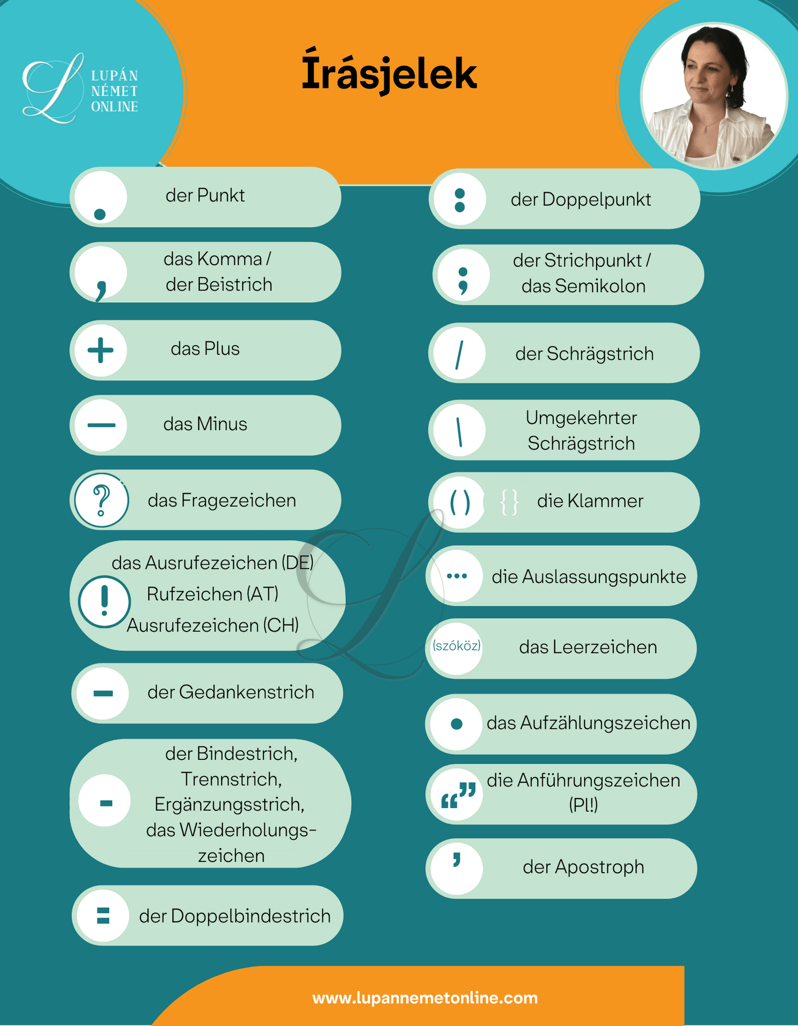 Ez a bejegyzés a segítségedre lesz, melyik írásjelet hogyan is mondjuk németül.