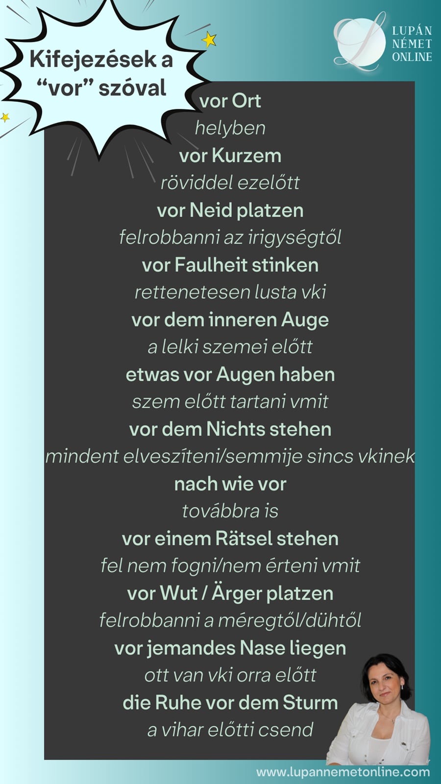 Nézzük meg, milyen kifejezések léteznek az “vor” elöljáróval!
