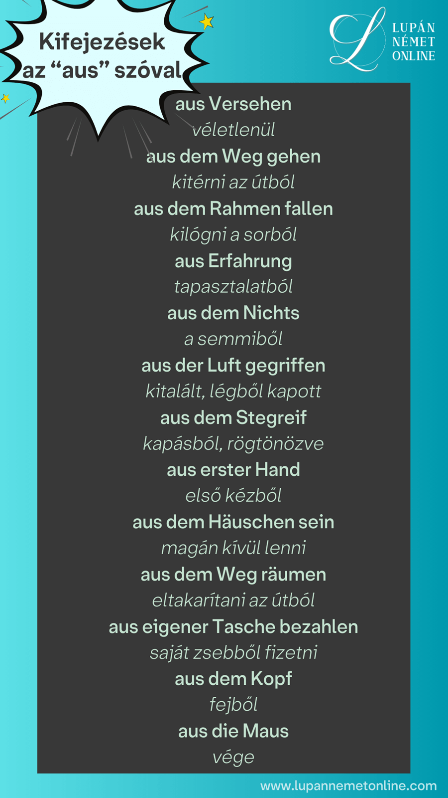 Nézzük meg, milyen kifejezések léteznek az “aus” elöljáróval!