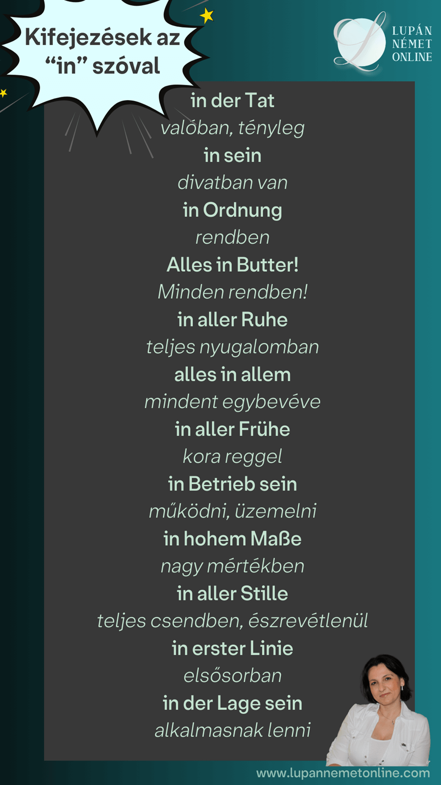 Nézzük meg, milyen kifejezések léteznek az “in” elöljáróval!