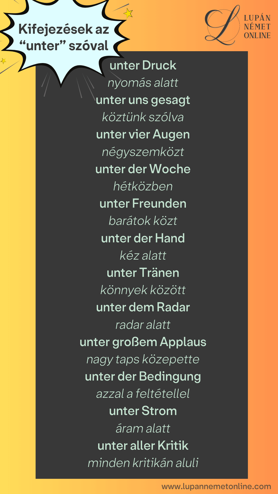 Nézzük meg, milyen kifejezések léteznek az “unter” elöljáróval!