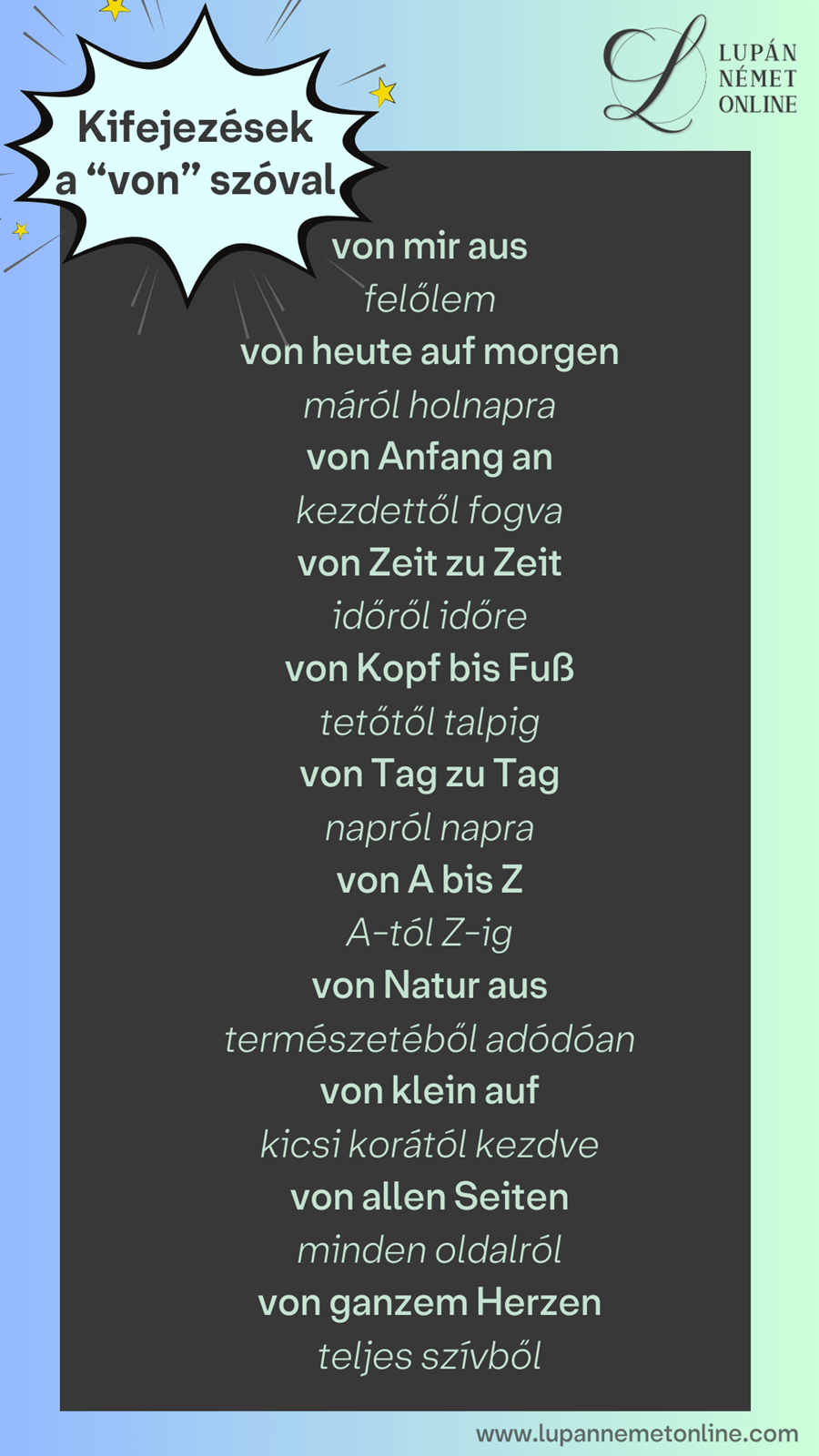 Nézzük meg, milyen kifejezések léteznek a “von” elöljáróval!
