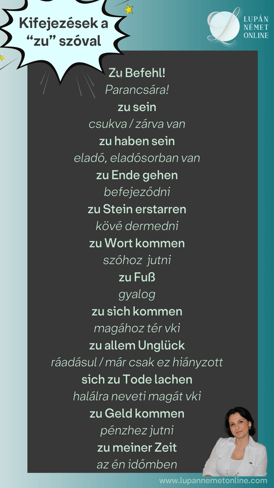 Nézzük meg, milyen kifejezések léteznek az “zu” elöljáróval!