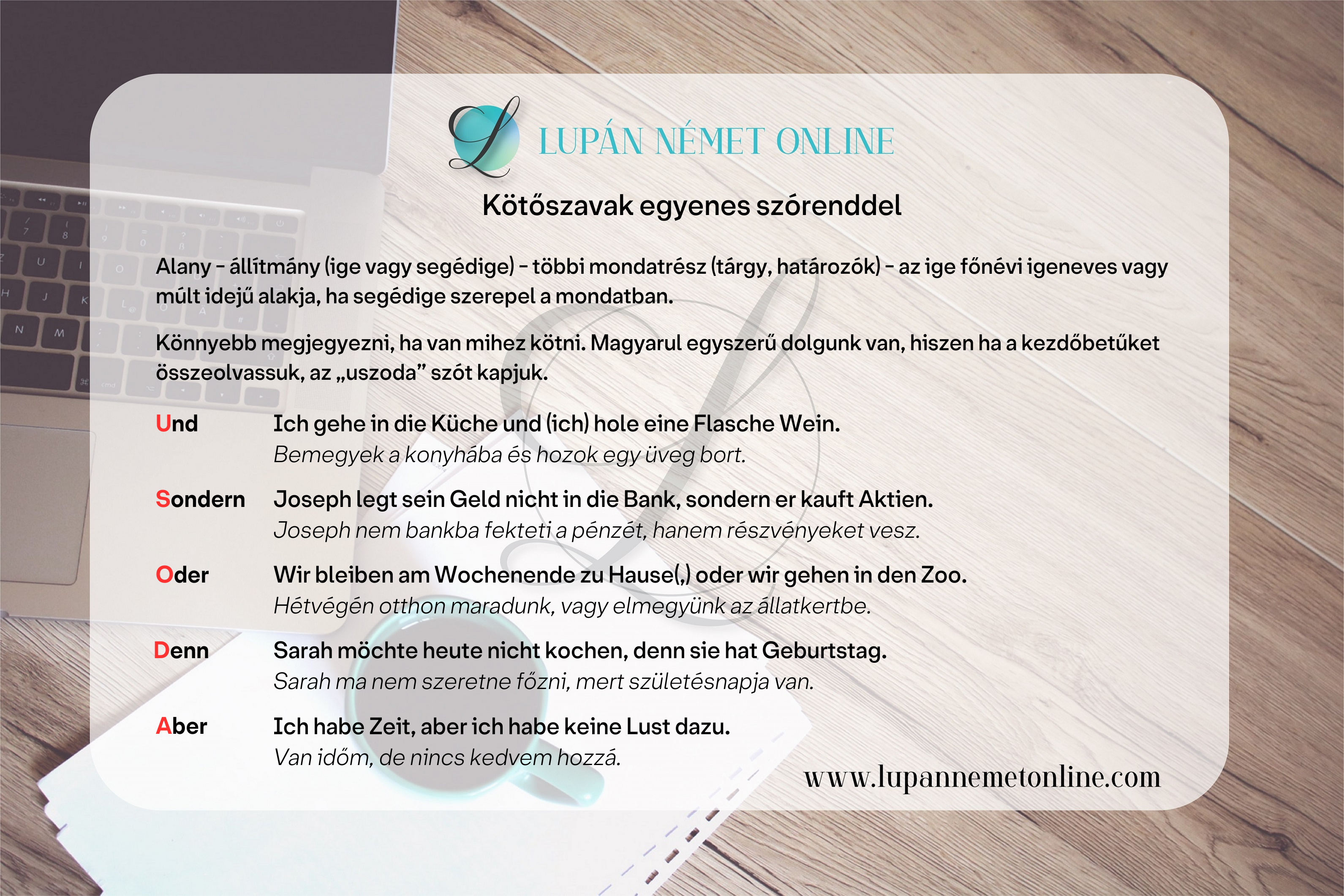Az “und” (és) az “oder” (vagy) kötőszót a linken tudod gyakorolni.