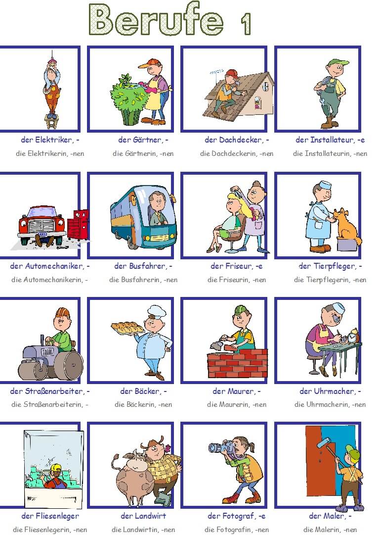 Lássuk, kinek mi a foglalkozása (=Berufe)?