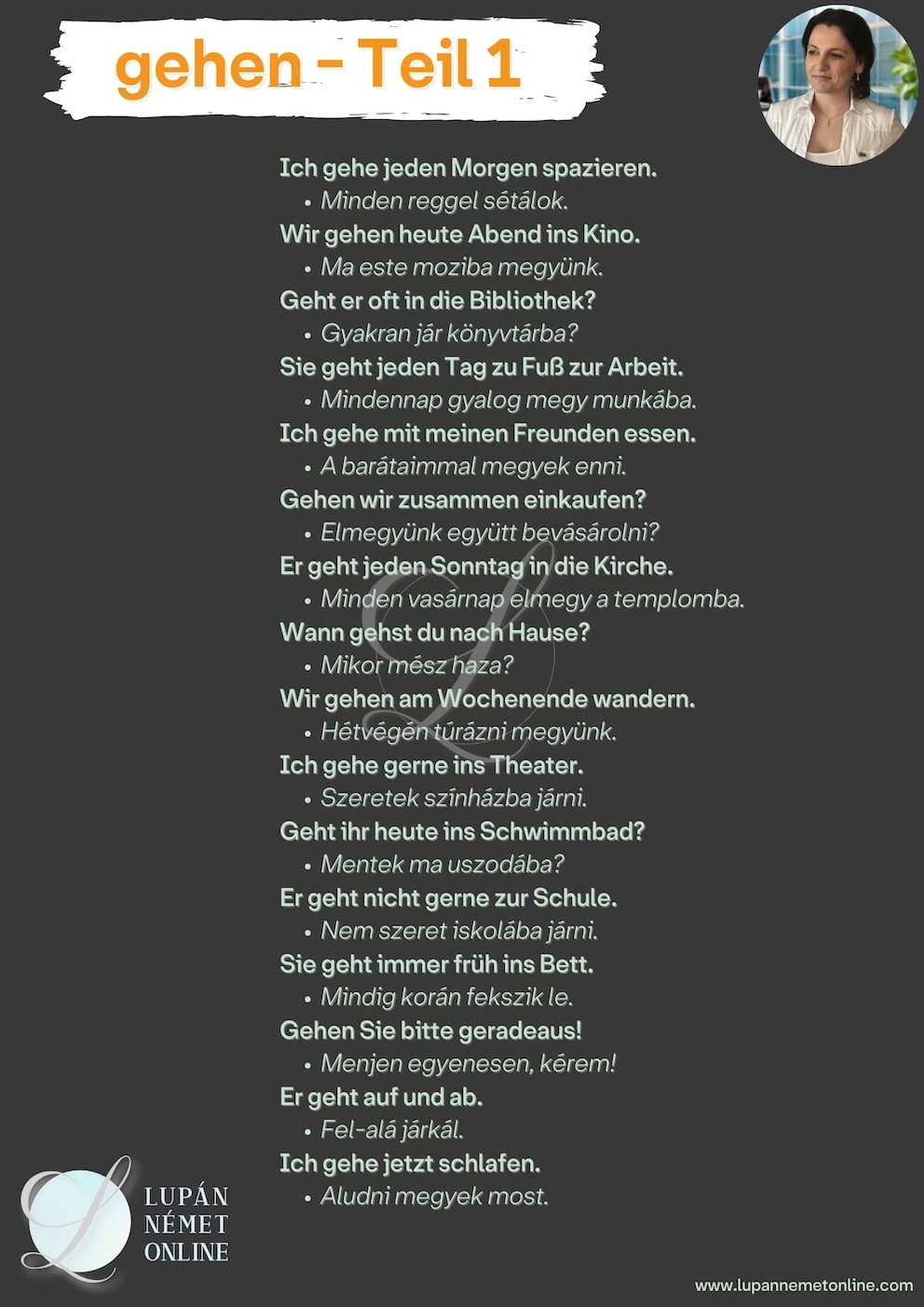 Milyen kifejezésekben és hogy szerepel a ‘gehen’ (menni) ige?