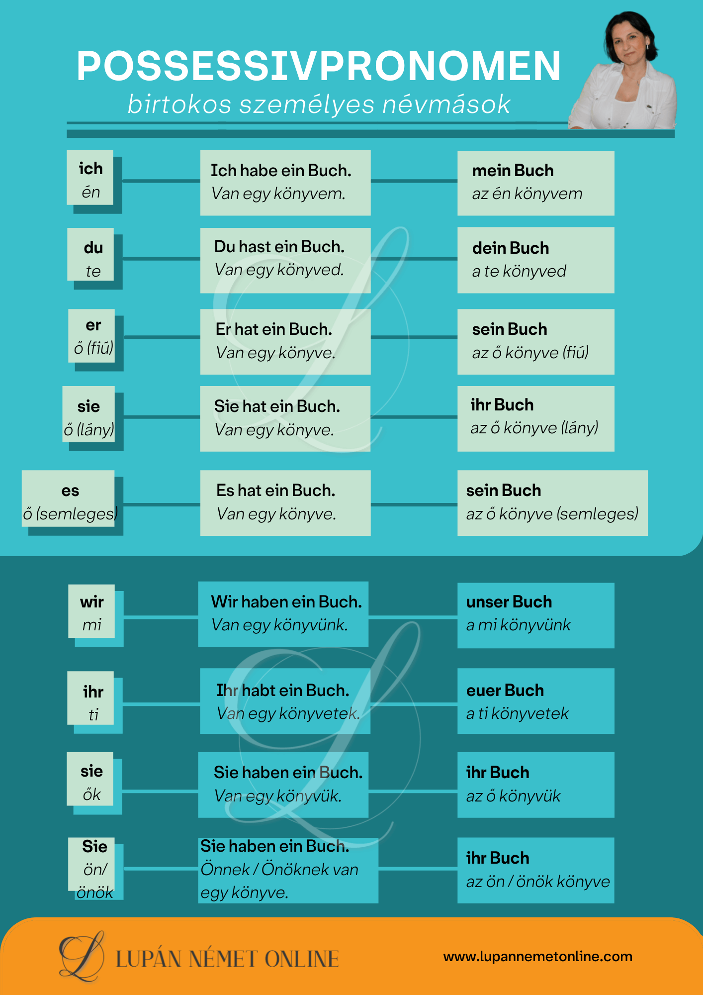 Összefoglaló táblázatot a birtokos személyes névmásokhoz a linken találsz.