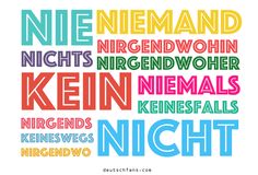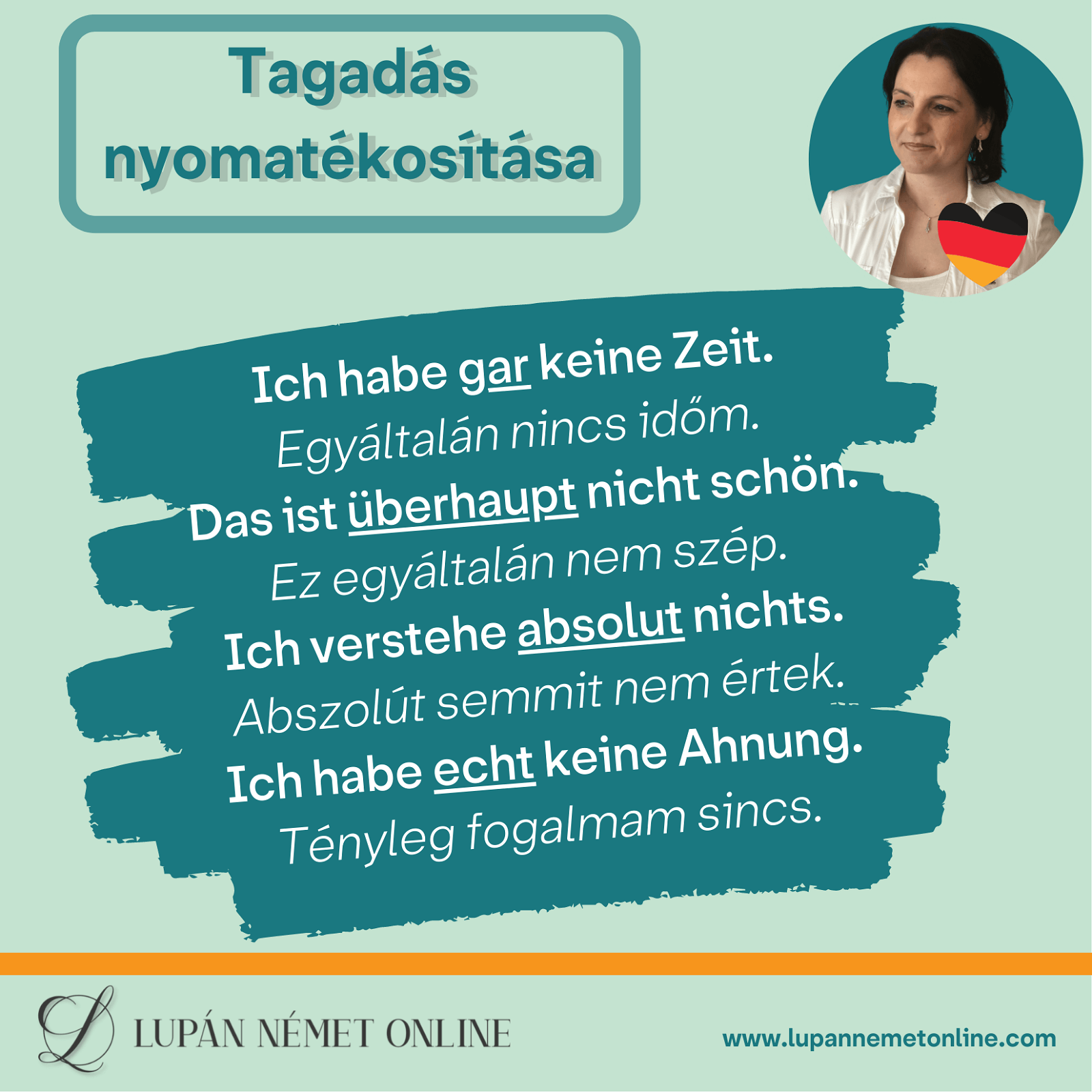 Német mondatban egyszer tagadunk tagmondaton belül. Tehát ha ezek közül a szavak közül már szerepel a mondatban bármelyik, nem tesszük ki még egyszer a “nicht” tagadószót!