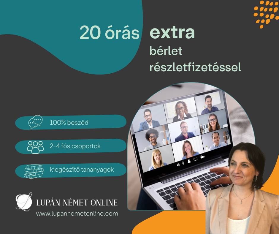 Jelentkezz most a következő 20 órás extra bérletre részletfizetéssel! Ugorjon egy hatalmasat a nyelvtudásod, azon belül is a beszédkészséged! A pénznemet (eurós vagy forintos legyen-e az utalás) a kis zászlóra kattintva tudod kiválasztani.