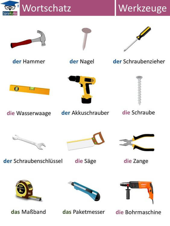 Lássuk hogy vannak a szerszámok németül!