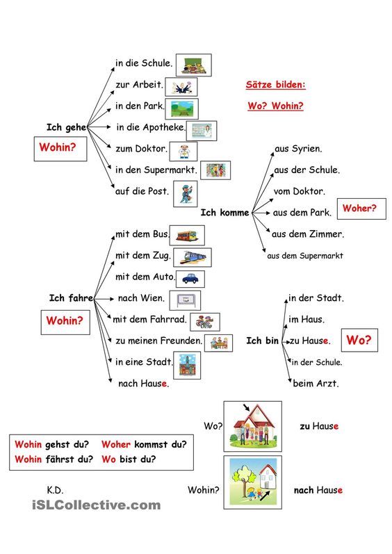 Feladatok a “wo? ” (“hol?”) és a “wohin?” (“hová?”) gyakorlására: